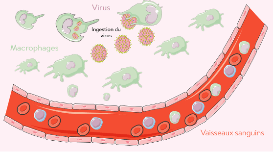 Fagocytóza: proces, pri ktorom imunitné bunky Makrofágy prijímajú a eliminujú škodlivé prvky. Makrofág: typ bielej krvinky imunitného systému, typický pre svoju svoju schopnosť fagocitovať (pohlcovať a odstraňovať patogény a bunkové zvyšky)