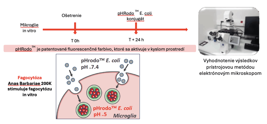 Vyhodnotiť účinok homeopatického  riedenia  Anas barbariae 200 K na fagocytózu v mikrogliách, na bunkovom modeli makrofágov v mozgu in vitro.